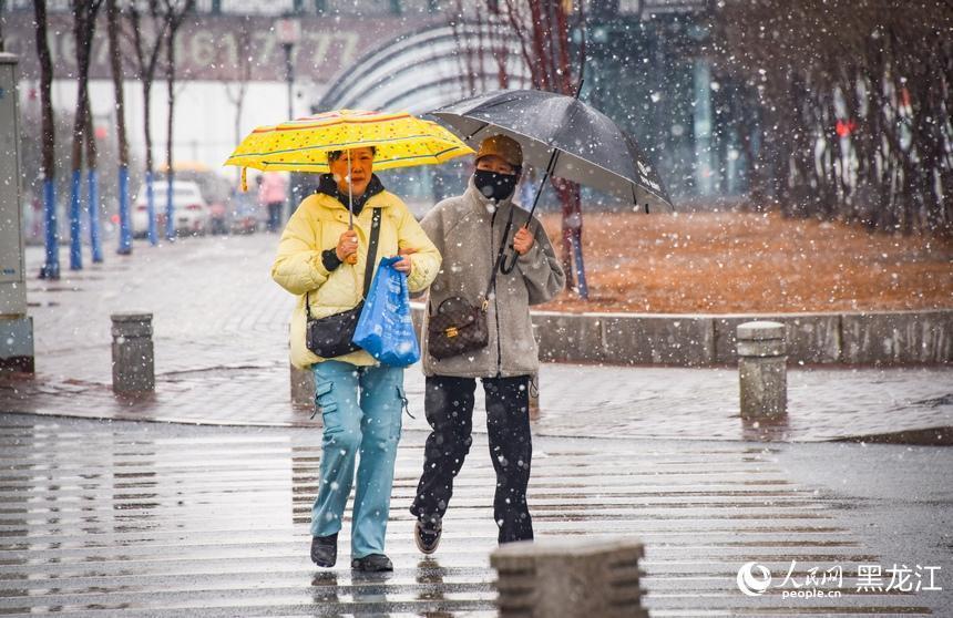人民网哈尔滨3月26日电 3月26日中午,初春的黑龙江哈尔滨迎来降雪天气,漫天的雪花在空中“翩翩起舞”。不少游客和市民纷纷驻足拍照,记录下这场春雪带来的美景。